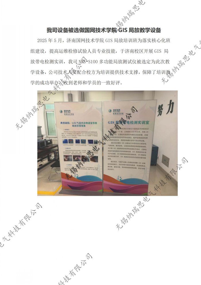 纳瑞思手持局放巡检仪被选做国网技术学院GIS局放教学设备